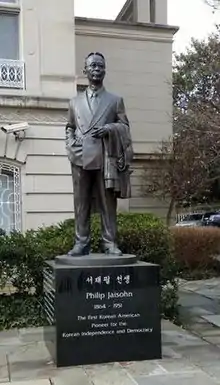Philip Jaisohn is a bronze statue of Soh Jaipil, in Washington, D.C. Jaipil, also known as his anglicized name Philip Jaisohn, was a long-time leader and advocate for the fight for independence and modernization of Korea. The statue was dedicated in May 2008.[1] It is located at the Korean Consulate, at 23rd Street and Massachusetts Avenue, Washington, D.C., near the Korean Embassy and in front of the Korean Consulate; 2320 Massachusetts Ave NW, Washington, DC 20008.