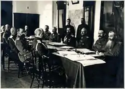 The Stavka was accompanied by military attachés from Russia's allies in the Entente. These included generals and officers from France, Britain, Belgium, Serbia, Montenegro, and Japan.[6]