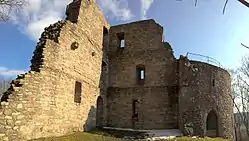 The ruins of the old castle today comprise the remains of a rectangular curtain wall with, in the west, a turret at the entrance (with a modern chimney built in), a three-storey cabinet in the northwest and a cellar. In mid-2007, large parts of the walls collapsed.