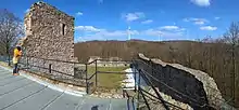 In 2004 the current owner had the east wall of the castle renovated and cleared the moat. In early 2008 the ruins were placed out of bounds because parts of the north wall had collapsed.[4] On 26 May 2013 the newly renovated ruins of Steckelberg Castle were officially re-opened to the public.[5]