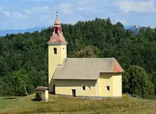 The local church, built north of the village, is dedicated to the Exaltation of the Holy Cross and belongs to the Parish of Šentlovrenc. It is a well-preserved example of Gothic architecture dating to the mid-15th century with few alterations.[6]