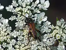 Stenopterus ater is a species of longhorn beetle found across the Western Mediterranean region from North Africa to France and Italy. The larvae grow in dead wood and the adults visit Umbelliferae flowers in summer. They are about 6 to 14 mm long with males and females being differently coloured. The elytra are all black in females and yellowish brown in males. A case of gynandromorphism has been recorded in the species.[1]