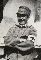 At the beginning of World War I, she took a medical training course and, in 1915, went to Vorarlberg, where she joined the Standschützen under the name "Stephan Hollenstein". Although her comrades-in-arms were aware of the deception, her superiors did not discover it for several months; at which time she was sent home.[5]