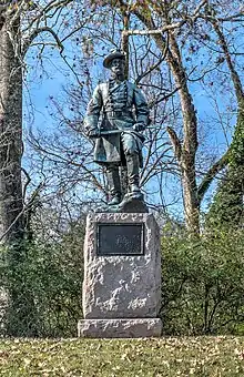 Lee is also memorialized with a statue by Henry Hudson Kitson in the Vicksburg National Military Park dedicated in 1909,[29] as well busts in the center of the Drill Field at Mississippi State University[30] and Friendship Cemetery in Columbus.[31][32][33] Lee Hall at Mississippi State University is also named in his honor.[34] Some colleagues have called him 'the father of industrial education in the South'.[35] The Lt. Gen. Stephen D. Lee Camp No. 545 of the Sons of Confederate Veterans in Vicksburg, the Stephen D. Lee's Caledonia Rifles Camp No. 2140 in Caledonia and the Captain Stephen D. Lee Chapter No. 301 of the Military Order of the Stars and Bars in Charleston, SC were named in his honor.[36][37]