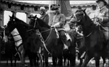 Lee served throughout the 1863 Siege of Vicksburg until Pemberton's surrender to Maj. Gen. Ulysses S. Grant on July 4, becoming a prisoner of war. While on parole, he was promoted to the rank of major general on August 3, 1863.[13] Beginning on August 16, Lee was assigned to command the Department of Mississippi & Eastern Louisiana cavalry, and he was officially exchanged on October 13. During that time, General Joseph E. Johnston sent Lee's small cavalry force of 2,500 men to Tennessee to reinforce General Braxton Bragg, who was beginning to lay siege to Chattanooga. Lee rode from northern Mississippi into northern Alabama, where he met Confederate cavalry commander Joseph Wheeler who had just conducted a raid through central Tennessee and convinced Lee his plans would be hopeless against the great number of U.S. soldiers in the region.[14]