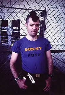 In the spring of 1977, Donaldson became depressed enough to cut his wrist and arranged to get himself arrested for sale of LSD in Norfolk, Virginia,[31] with the hope, he later wrote, "to find myself being wanted and needed, to find the warm security I had experienced with the marines in the county jail."[36] Donaldson was placed in the city jail, where he was gang-raped nightly until the guards were alerted and he was put in solitary confinement for his protection (to which Donaldson vigorously objected, believing the loss of rights and privileges unfair). After being released into a cell with blacks (who had allegedly paid $5 to receive him), Donaldson was again raped and "paralyzed with terror, the emotions of D.C. Jail overwhelming [him]", he fought his assailant, for which he was returned to solitary. After being released into a white cell, he was greeted: "Why, it's Donny the Punk!", giving him his nickname.[36]