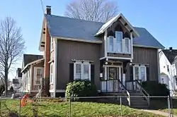 The Stephen Hall House is a historic house at 64 Minot Street in Reading, Massachusetts. The 1+1⁄2-story wood-frame house was built in the 1850s, and is one of Reading's best examples of Gothic Victorian residential architecture. It has board-and-batten siding, long and narrow windows, and a central projecting gabled overhang with Gothic arched windows and a deep eave with brackets. Although it appears to be a near copy of a design published by Andrew Jackson Downing, its plan was apparently copied from a house in Wakefield, and is lacking some of Downing's proportions.[2]