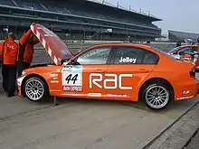 Jelley switched to touring cars after his GP2 Asia campaign contesting the 2008 British Touring Car Championship with Team RAC as Colin Turkington's team-mate.[6] His last GP2 Asia weekend clashed with the second BTCC meeting of the year at Rockingham meaning a GP2 race in Dubai on the Friday and BTCC qualifying at Rockingham on the Saturday. Early results were not impressive, with only one point in the first 4 meetings, results gradually improved with points finishes in each of the next 3 meetings, At Silverstone he qualified seventh, but after finishing there in round 25, he crashed in round 26, dislocating his shoulder. Despite this injury he did contest round 27, finishing in the points. At the Brands Hatch season finale, he took pole position, although as he explained to ITV4, the team did not initially believe he had set the fastest time, and attributed seeing P1 on the screen to a timing error. In the race his gearbox failed, but he fought back to score minor points in the final round. For 2009 he continued with Team RAC and showed he had benefited from a years knowledge by finishing fourth (a then personal best) at the first round at Brands Hatch. Results continued to improve and at the halfway point of the 2009 season, Jelley took two-second-place finishes and a third position in the third race at Croft to clinch his first podium finishes in the sport. This was followed up at Rockingham with two wins one in race 1 from a starting position of fourth and one in race three again from fourth.