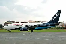 Sterling Airlines A/S was a low-cost airline with its head office at Copenhagen Airport South in Dragør, Dragør Municipality, Denmark.[1] It was created in September 2005 through the merger of two Danish airlines — Sterling European Airlines and Maersk Air — which had been acquired by the Icelandic investment group Fons Eignarhaldsfélag a few months before for MDKK 500. Fons was owned by Icelandic business tycoon Palmi Haraldsson. One month after the merger, Sterling Airlines was sold to the FL Group for an amount of MDKK 1500. In December 2006, Sterling was sold again, this time to Nordic Travel Holding. On 6 January 2006, Hannes Þór Smárason, CEO of the FL Group, stated that a merger of EasyJet and Sterling was a possibility.