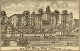 Steubenville Female Seminary, also known as Beatty's Seminary for Young Ladies or Steubenville Seminary,[1] was a female seminary in Steubenville, Ohio. It was founded by Presbyterian minister Charles Clinton Beatty in 1829.[2] Beatty served as Superintendent and his wife, Hetty Elizabeth Beatty, served as principal.[3] The school had 7 students during the first year.[3] The campus was located on South High Street between Adams and South Streets[4] with a view of the surrounding hills.[3]