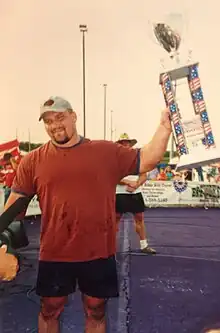 Steve Kirit (born 1972) is an American professional strongman competitor. Steve is a 2-time winner of America's Strongest Man.[1] Steve competed twice in the Arnold Strongman Classic, finishing 5th in 2003 and 9th in 2004.[2] Steve competed in the World's Strongest Man in 2002, 2003 and 2004. Steve trained with fellow strongman competitor Steve MacDonald.[3] Steve finished 7th in the first IFSA World Cup Championships in 2004.[4] Had nine 1st place victories and five 2nd-place finishes as a pro, and finished in the top 5 in the USA in 3 of the 4 U.S. Nationals he appeared in.[5] Steve retired from professional competition in 2006.[6]
