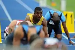 After an uneventful 2008, Mullings returned to form in 2009. He placed second over 200 metres in the national championships behind Olympic champion Usain Bolt.[5] He set new personal bests in both sprints in July, running 20.01 seconds over 200 m in Rethymno,[6] and 10.01 seconds over 100 m at the Golden Gala.[7] Competing at the 2009 World championships in Berlin, Mullings finished 5th behind Bolt in the 200m in a personal best time of 19.98 seconds and won his first global gold medal as part of the successful Jamaican 4×100 metres relay team, running in both heats and the final.