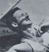 ![]() Seymour posed with head back, facing direction of throw, with javelin over head, circa 1947 | |||||||||||||||||||||