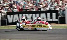Born in Easingwold, North Yorkshire, Webster began as a 19-year-old racing at club level, first racing at the Elvington Airfield circuit near York,[2] and quickly moved up to national and then world championship in 1983, winning his first world championship in 1987 while partnered with Tony Hewitt, riding an LCR-Yamaha machine. From 181 Grand Prix and World Cup races entered, he has had 62 wins, 37 second places and 27 third places as well as 82 pole positions. He has won the FIM Sidecar World Championship on 10 occasions (1987, 1988, 1989, 1991, 1997, 1998, 1999, 2000, 2003, and 2004), with Tony Hewitt, Gavin Simmons, David James and Paul Woodhead.[1]