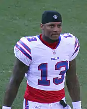 Steven John Johnson Jr.[1] (born July 22, 1986) is an American former professional football player who was a wide receiver in the National Football League (NFL). Johnson was drafted by the Buffalo Bills in the seventh round of the 2008 NFL Draft and has also played for the San Francisco 49ers and San Diego Chargers. He played college football at Kentucky. Despite never making the Pro Bowl, Johnson was the first Bills receiver to post back-to-back seasons with over 1,000 yards receiving, and has been considered one of the best draft steals in franchise history.[2]