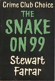 In 1958, Farrar published his first novel, The Snake on 99, a whodunit crime story involving a Welsh detective known as Elwyn Morgan. In 1961 this was followed with Zero in the Gate, another whodunit this time set around a newspaper company, drawing on his prior experiences. Two years later, his third novel, Death in the Wrong Bed, came out, followed by a romance novel, Delphine, Be a Darling, which was published under the female pseudonym of Laurie Stewart at the advice of his publisher.[21]