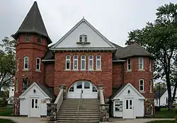 The building contained an auditorium which was designed as a community gathering place for stage productions and lectures. The auditorium has been used as a movie house in the 1940s and a concert venue in the 1960s. The building was restored in 1982.[3] It is still used by the township.[4]