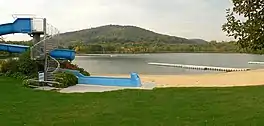 Stockelache is a lake in West Hesse Depression, Hesse, Germany. At an elevation of 185 m, its surface area is 10 ha. It is a bathing lake.
