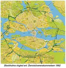 - ↑ Malmsten, Bo; Persson, Magnus (2000). Dennispaketet – låsningar och lösningar. Regionplane- och trafikkontoret, Stockholms läns landsting. ISBN 91-86574-55-8. Archived from the original on 2007-09-28. Retrieved 2007-08-11.