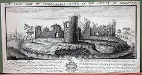 Engraving of Stogursey Castle in 1733 by Samuel and Nathaniel Buck