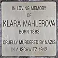 IN LOVING MEMORY OF KLARA MAHLEROVA BORN 1883 CRUELLY MURDERED BY NAZIS IN AUSCHWITZ 1942 |