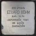 HERE LIVED EDUARD BÖHM BORN 1874 DEPORTED 1941 TO ŁÓDŹ MURDERED |