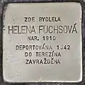 HERE LIVED HELENA FUCHSOVÁ BORN 1910 DEPORTED 1942 TO THERESIENSTADT MURDERED |