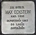 HERE LIVED MAX ECKSTEIN BORN 1896 DEPORTED 1941 TO ŁÓDŹ MURDERED |