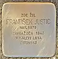 HERE LIVED FRANTIŠEK JUSTIC BORN 1879 MURDERED 1942 IN KALEVI-LIIVA ESTONIA |