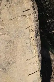 Stoney Point, also known as the Stoney Point Outcroppings or Chatsworth Formation,[2] is a Los Angeles City park near the north end of Topanga Canyon Boulevard (State Route 27) in Chatsworth, Los Angeles, California, part of the city of Los Angeles. Stoney Point is a popular destination for hikers, equestrians and also with rock climbers because of its large boulders, which afford many opportunities to practice the sport of bouldering. The top of the rock formation offers excellent views of Chatsworth, the Santa Susana Mountains, Coyote Pass, and the entire San Fernando Valley.