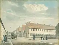 Christians Plejehus (No. 108) is a former hospital and workhouse built to design by Carl Pflueg in 1765 to 1769.[8]