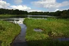 From the time of the first James Templer, many trees were planted around the estate. This continued into the 20th century, when the Forestry Commission acquired the woodland around Stover Lake for commercial timber production. In 1979 about 114 acres (46 ha) of the land, comprising woodland, heathland, grassland, marsh and Stover Lake, was sold to Devon County Council for use as a country park, now known as Stover Country Park, and a Site of Special Scientific Interest.[2][23] Since 1995, the parkland and gardens have been Grade II listed in the National Register of Historic Parks and Gardens.[2]