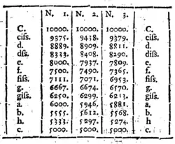 The article reported that the actual tuning was nothing new since it did not differ significantly from the usual division of the octave. - ↑ Dissertatio de Sono et Tono. Leipzig. 1779. 4; cited by Johann Samuel Traugott Gehler "Ton" Physikalisches Wörterbuch oder Versuch einer Erklärung der vornehmsten Begriffe und Kunstwörter der Naturlehre Vierter Theil. Schwickertschen Verlage, Leipzig 1791 p.387-388