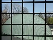 In the fall of 1964 the Rochester Museum of Arts and Sciences announced that it had received a gift of "more than one million dollars" from Mr. and Mrs. Edwin G. Strasenburgh of Rochester for the purpose of building a planetarium.[3] The building design, by Carl F. W. Kaelber Jr. of the Rochester architectural firm of Waasdorp, Northup & Kaelber, was announced on June 28, 1966.[4] In contrast to the 1959 concept, Kaelber's design placed the Strasenburgh Planetarium on the east side of the original Museum building. The Planetarium building was said to resemble a snail shell or a spiral nebula.[5]