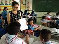 An elementary school teacher instructing her students.