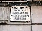 In 1842 began the labeling of the streets with marble plaques and cast lead letters. The origin of this campaign can be found in the bombardment of the city by General Espartero and the subsequent fine of 12 million reales that he imposed on the people of Barcelona, which led many citizens to erase the names and numbers of the streets — until then simply painted on the walls — so as not to be located. This led to the regulation of the street nomenclature, with a system very similar to the one used today.[67]