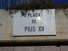 Numerous streets were also baptized with religious names, either saints (hagiotoponyms) or invocations from convents and monasteries; some examples would be: San Antonio Abad, San Pablo, San Olegario, Santa Madrona, San Agustín, Santa Mónica, San Paciano, Santa Eulalia, San Severo, Bonsuccés, San Honorato, San Miguel, Ave María, Trinidad, San Francisco, Merced, Santa Lucia, Valldonzella, Santa Catalina, Montalegre, San Cucufate, Egipcíacas, San Vicente, Carmen, Pie de la Cruz, Elisabets, Santa Ana, Jerusalén, Magdalenas, San Pedro (Alta, Baja and Mediana), Montsió, etc.[37]