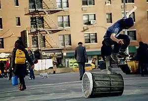 A flip over a bin at a spot in New York City
