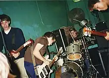 The group was formed in 1994 by Chris Gunst (guitar/vocals) and Jimmy Tamborello (bass/vocals), who met while they were both college radio DJs at KXLU in Los Angeles.[2] The band's sound was described as "Enocore" by the press and some fans at the time, due to their use of Brian Eno-like soundscapes merged with the sounds of hardcore punk rock. Strictly Ballroom was affiliated with the emo hardcore scene of the mid-to-late 1990s and played at known clubs such as Los Angeles' Jabberjaw.[3] Gunst went on to form Beachwood Sparks, and Tamborello went on to form the Postal Service. Both projects subsequently release albums on Sub Pop Records, the latter of which received platinum certification from the Recording Industry Association of America.[4][5][6][7]