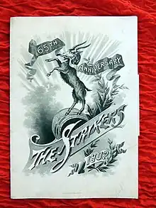 In 1852, they became the first mystic society to hold a ball at the Battle House Hotel.[2] By 1881, the Strikers Independent Society had discontinued their annual street parades, but continued to hold a grand ball on New Year's Eve, though in 1884, they paraded once more.[2]