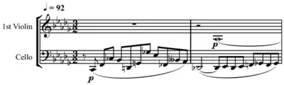 The piece contains twelve-tone elements, such as the opening in the cello: