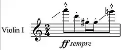 As in the last movement, this movement presents the emotional contours of the third quartet in microcosm. The movement comprises six ideas repeated to form eighteen short sections. The work starts off with a highly charged glissando motif, but quickly passes through sections of lyric tonality, atonality, and florid ornamentation.[2]