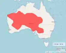 S. elderi is present in many Australian arid regions including states and territories of New South Wales, Northern Territory, Queensland, South Australia, and Western Australia.[2] S. elderi is found within spinifex-dominated landscapes, on red sandy plains, sandy dunes and occasionally on stony hills.[8] In addition, spinifex often occurs in association with Hummock grasslands, Mallee and Acacia woodlands and shrublands.[9]