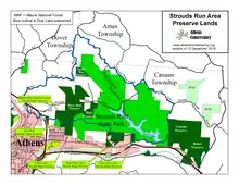 The Strouds Ridge Preserve is a project of Athens, Ohio, to create a greenbelt buffer and trail system on the outskirts of the city. This effort began in 2002, and has so far involved five parcels of land, for a total of 333-acre (135-hectare), in three discontinuous tracts. All these properties, which include the pre-existing 22-acre (89,000 m2) Sells Park, are contiguous with Strouds Run State Park.