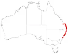 This species of styphelia grows in coastal heath from Hawks Nest in New South Wales to south-east Queensland.[2][8]