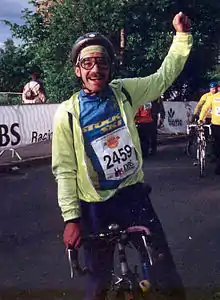 In 1997, Bram Moens from the Netherlands rode his faired recumbent in the race, finishing at 13:46:08 – almost two hours ahead of the second rider, and setting a new course record. Bram Moens and his bike were cleared by the organizers to start, and recumbents had taken part many times before. Despite this, the record was not accepted by the organizers, and recumbent bicycles banned, both actions without claiming any rider misbehaviour.[2][3]