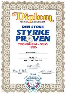 Styrkeprøven, also called Den Store Styrkeprøven ('The Great Trial of Strength'), is a 540 km (340 mi) long bicycle cyclosportive which starts in Trondheim and finishes in Oslo, Norway. It was first held in 1967, initiated by Erik Gjems-Onstad and has taken place since then in late June every year.