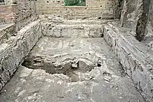 The bathhouse was renovated after the earthquake of 62 AD, when a piscina calida, a heated swimming pool, was added to the north of the complex.[9][10][11]