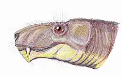 Suchogorgon is an extinct genus of gorgonopsids from Russia. It was a medium-sized animal with a low, narrow skull. Its skull is dotted with small pits, which might have housed sensory organs in life. Its canines were large and flat as in most gorgonopsids.[1]
