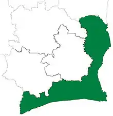 | Today part of | As Sud Dept: Abidjan Autonomous and Lagunes Districts; Gbôklé, Lôh-Djiboua, San-Pédro, and Sud-Comoé Regions As Sud-Est Dept: Abidjan Autonomous, Lagunes, and Zanzan Districts; Gbôklé, Indénié-Djuablin, Lôh-Djiboua, San-Pédro, and Sud-Comoé Regions |